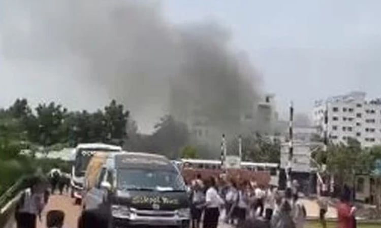 A Bangladesh Air Force F7 aircraft crashed into a building of Milestone College in Dhaka’s Uttara around 1:30pm. Bangladesh Army and fire service started rescue operations.