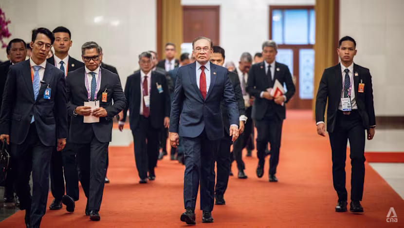 Malaysia’s Prime Minister Anwar Ibrahim arrives for a meeting with China’s President Xi Jinping at the Great Hall of the People in Beijing, China, Sep 2, 2025. (Photo: CNA/Hu Chushi)
